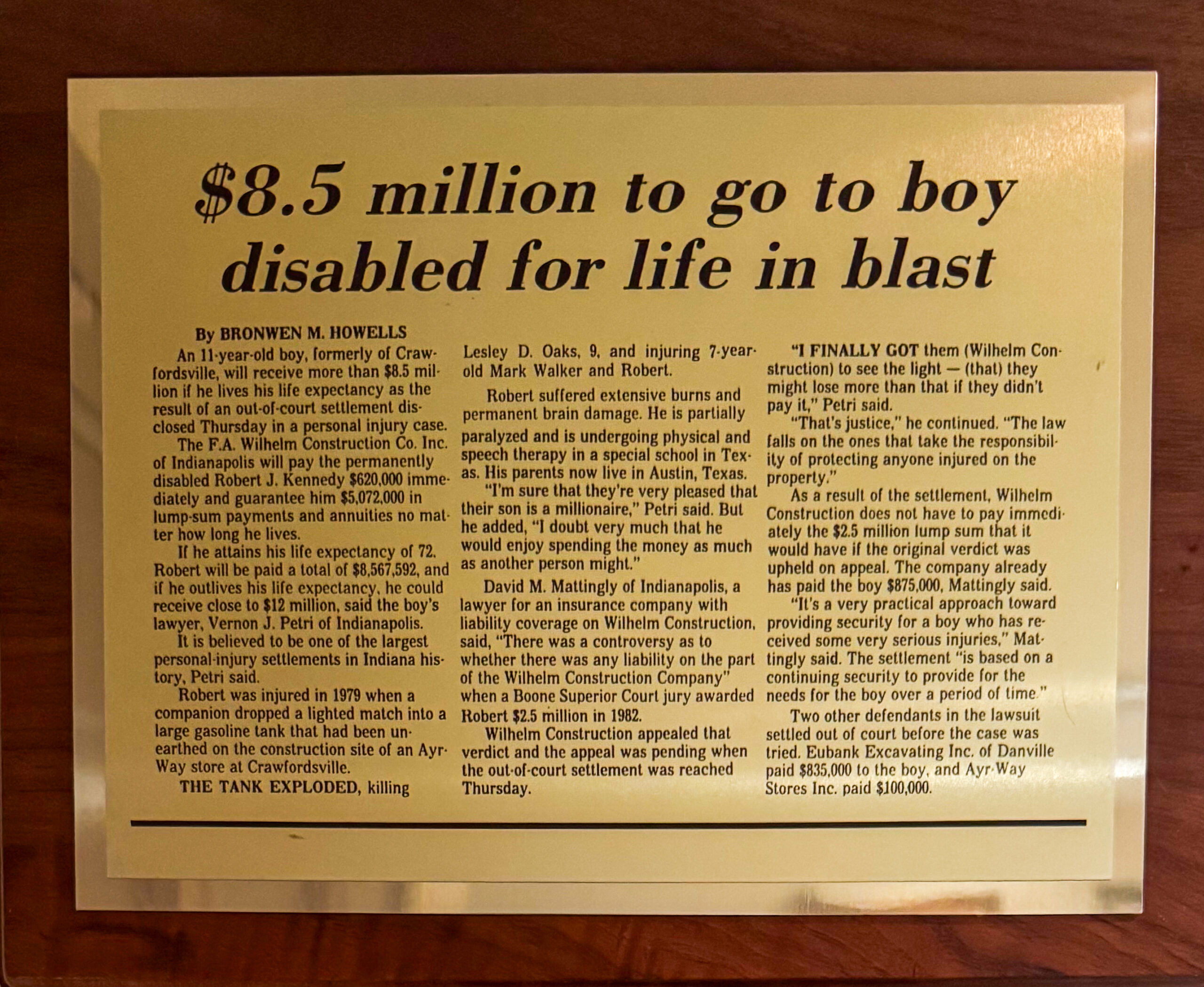 After a thorough investigation and expert testimony, Mr. Petri demonstrated that negligence by those responsible for the site directly caused the child’s life-altering injuries. The case resulted in one of the largest personal injury recoveries in Indiana at the time, reflecting his ability to hold negligent parties accountable and obtain substantial compensation in catastrophic injury cases.